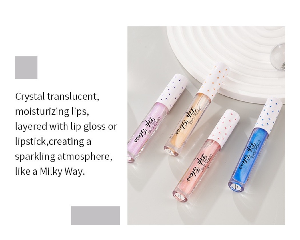Imagine lips that sparkle like the Milky Way — crystalline, translucent, and utterly mesmerizing. Our Crystal Glass Lip Gloss collection brings this celestial vision to life, with four enchanting shades that transform your lips into glittering masterpieces.