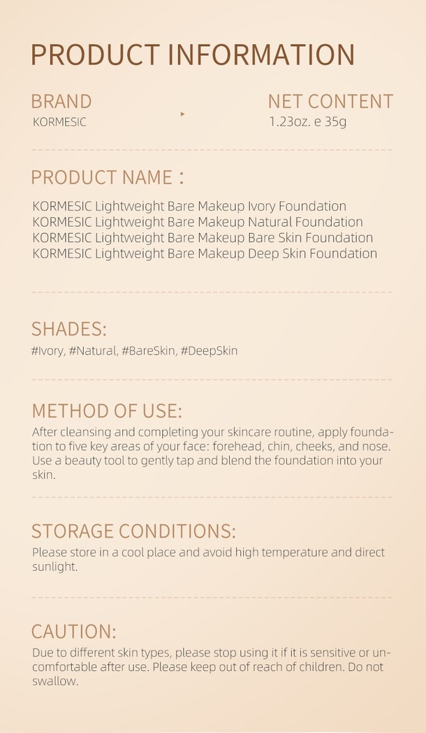 KORMESIC Long- Lasting Makeup Hold Foundation — Seamless Wear, Perfecting Your Ideal Makeup Look