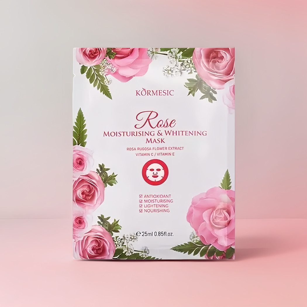 Imagine skin that's not only deeply hydrated but also visibly brighter, more radiant, and protected against environmental stress. Our Rose Moisturizing + Whitening Vitamin C&E Brightening Sheet Mask makes this dream a reality. Infused with the delicate essence of rose, this mask delivers intense moisture that quenches thirsty skin while working to lighten dark spots and even out skin tone. Enriched with the antioxidant powerhouse duo of Vitamin C and Vitamin E, it provides comprehensive protection against free radical damage while nourishing skin for a healthy, luminous glow. With each use, dull, dehydrated skin is transformed into a radiant, moisturized, and beautifully brightened complexion.