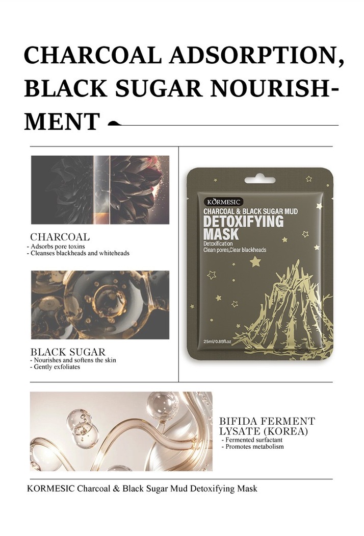 Adsorbs pore toxins, deeply cleanses blackheads and whiteheads for thorough purification.