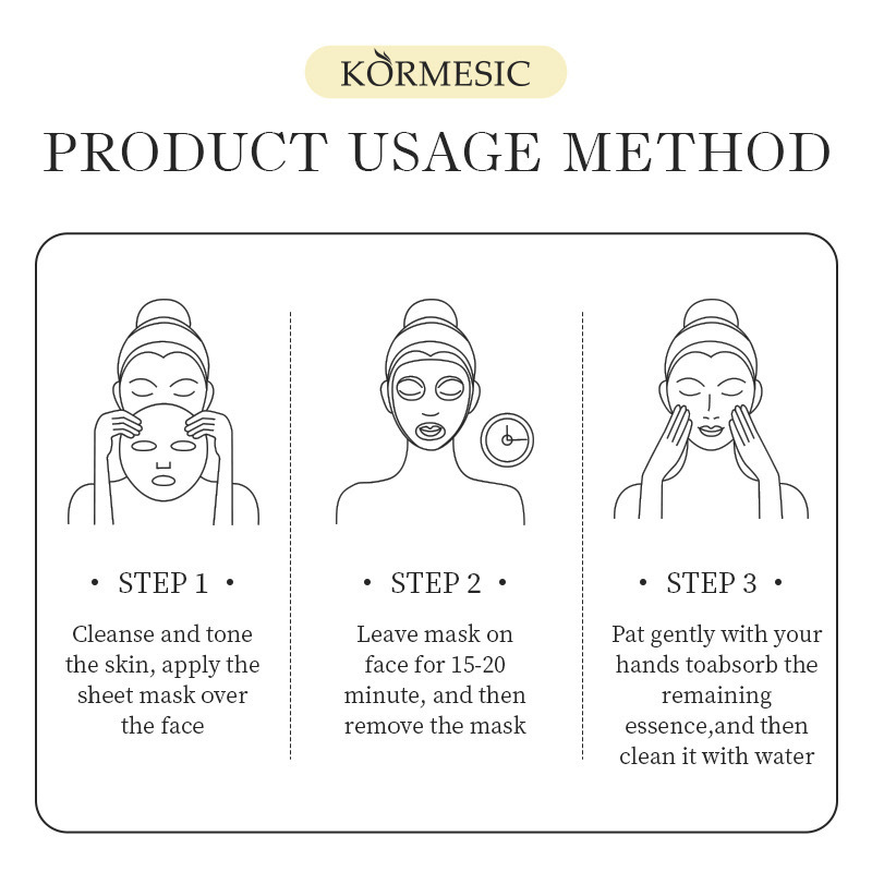 Apply: Unfold the sheet mask and gently smooth it over your face, avoiding the eye and lip area.