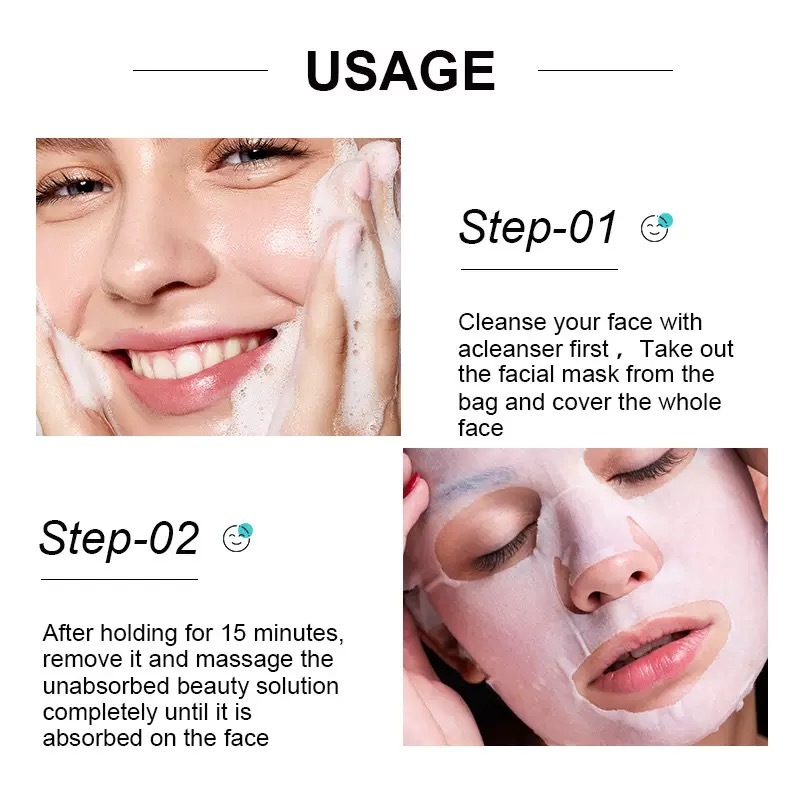Apply: Unfold the sheet mask and gently smooth it over your face, avoiding the eye and lip area.