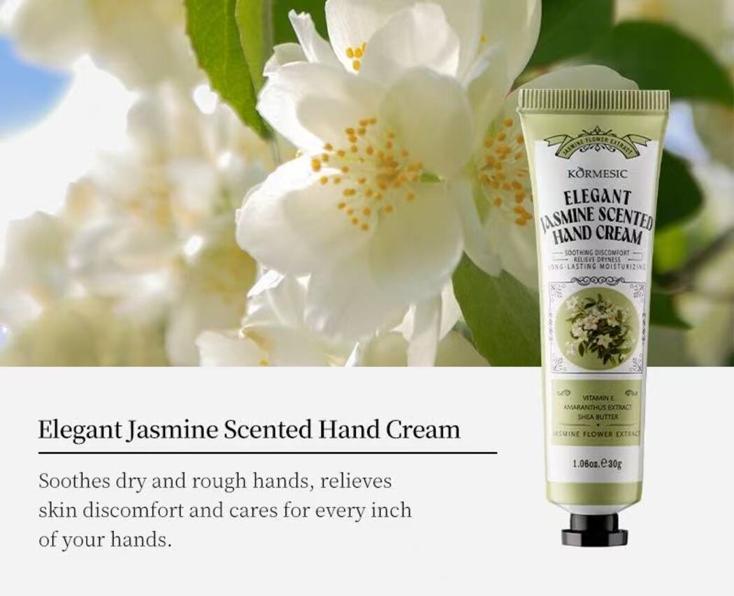 Soothes dry and rough hands, relieves skin discomfort, and cares for every inch of your hands. With long-lasting moisturizing benefits and an elegant jasmine scent, this hand cream is the perfect companion for your daily hand care ritual.