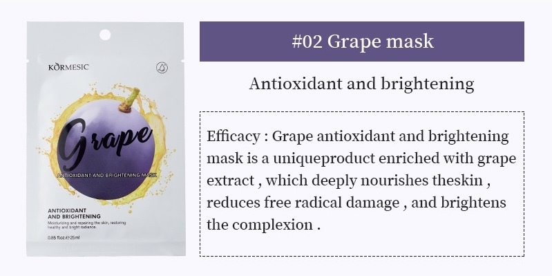 Is your skin looking dull, tired, or showing signs of environmental stress? Fight back with the power of grapes. Our Grape Antioxidant + Brightening Repair Sheet Mask harnesses the potent antioxidant properties of grape seed extract to neutralize free radical damage, brighten lackluster complexions, and restore a healthy, radiant glow. But it doesn't stop there—this unique formula also delivers exceptional moisturizing and repairing benefits, leaving skin deeply hydrated, visibly firmer, and beautifully radiant. With each use, tired skin transforms into a complexion that looks as healthy as it feels.