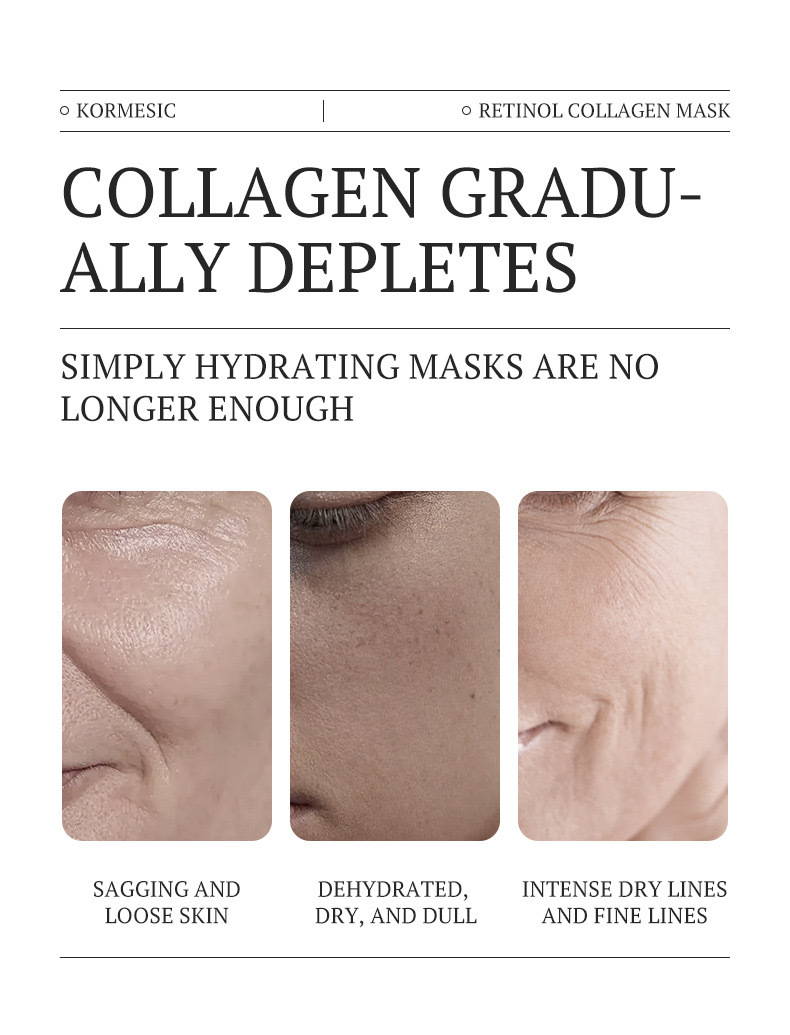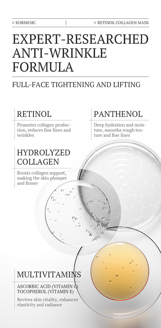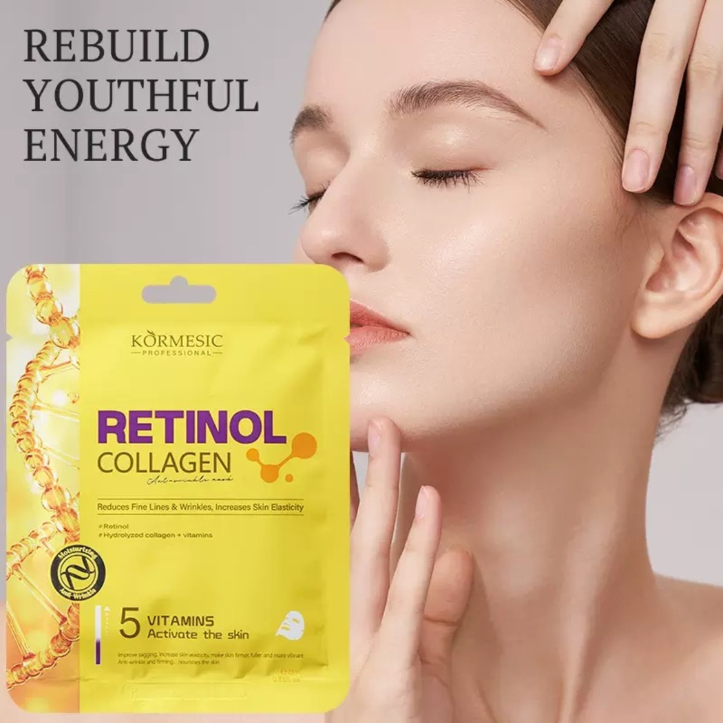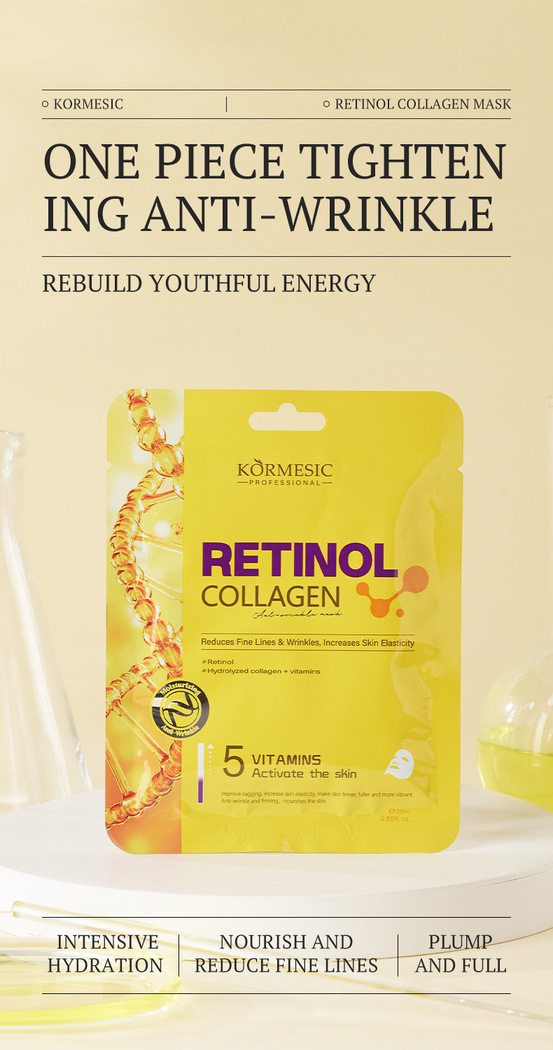 Is your skin beginning to sag, lose its bounce, or show deepening wrinkles? Reclaim your youthful vitality with our Retinol + Collagen Professional Firming & Anti-Wrinkle Sheet Mask. This powerful professional-grade treatment combines two of skincare's most proven anti-aging ingredients—retinol and hydrolyzed collagen—with a complex of 5 essential vitamins to deliver comprehensive age-defying benefits. Retinol works deep within skin to accelerate cell turnover, smooth fine lines, and stimulate collagen production. Hydrolyzed collagen penetrates to improve elasticity and firmness, while the 5-vitamin complex activates skin's natural vitality. With each use, sagging, tired skin is transformed into a firmer, fuller, and more vibrantly healthy complexion. It's professional-grade rejuvenation in the comfort of your home.