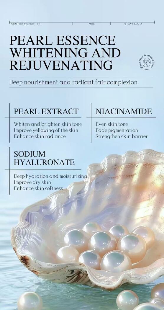 Relax: Leave mask on face for 15–20 minutes to allow the pearl-infused essence to absorb deeply. (The mask is filled with essence without dripping.)